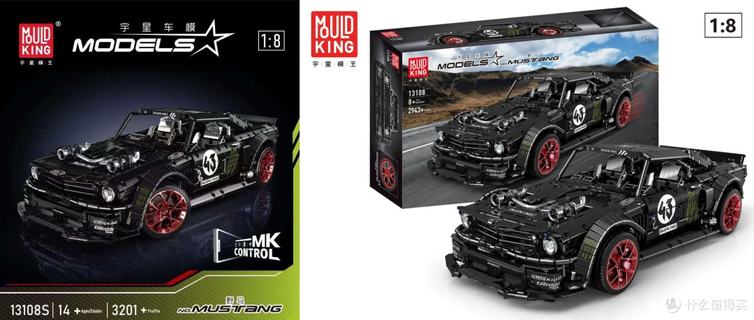 宇星模王 货号:13108S,颗粒数:3201+pcs,野马。 高德斯零件,酷砖家系列,标注尺寸为:55.4*5.8*15cm。 标配动态版本,电机组包括(四通道锂电池*1,遥控器*1,怪兽马达*2,伺服电机*1,延长线*3,碳纤维配件一批)。 货号一般有S结尾,就是优化/升级的版本。 这次对比13108,最明显的是颗粒数,从2943pcs,升级到3201pcs。 增加的零件,我猜,是部分零件要分拆而增加,另外会把原版本有bug的步骤优化一下。 不过,如果大家没买这台的,我也是建议买新不买旧,如果有问题的,都应该已经改正了。 另外,我看到宣传图电机位置,是采用“附赠”两个字,这是说,这台车只有动态版本?没静态的? 但可能国内的旧版本未卖完,我看旗舰店也还是在卖旧款。